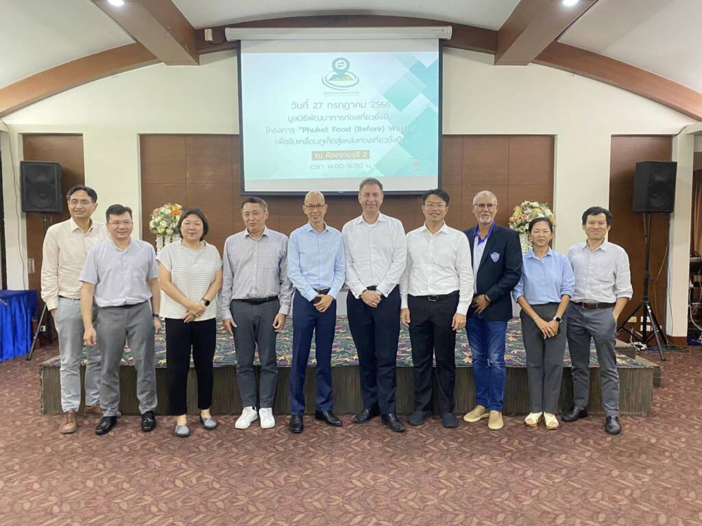 วันที่ 27.07.23 ณ โรงแรมภูเก็ตเมอร์ลิน คุณภูมิกิตติ์ รักแต่งาม ประธานมูลนิธิพัฒนาการท่องเที่ยวยั่งยืน ร่วมด้วยคุณเลิศชาย หวังตระกูลดี ผู้อำนวยการการท่องเที่ยวแห่งประเทศไทย สำนักงานภูเก็ต และองค์กรภาคเอกชนภูเก็ต เปิดตัวโครงการ Phuket Food (Before) Waste เชิญผู้ประกอบการโรงแรม ท่องเที่ยว ร้านอาหาร เข้าร่วม มูลนิธิ SOS สถาบันการศึกษา มาจัดการ Food Waste สร้างเป็นระบบจัดการ นำอาหารจากไลน์บุฟเฟ่ต์ Breakfast โรงแรม นำมาให้เชฟมืออาชีพปรุงเป็นอาหารจำหน่ายให้ผู้บริโภค ลดการผลิตทิ้งปล่าวประโยชน์ โดยมีรายละเอียดโครงการดังนี้