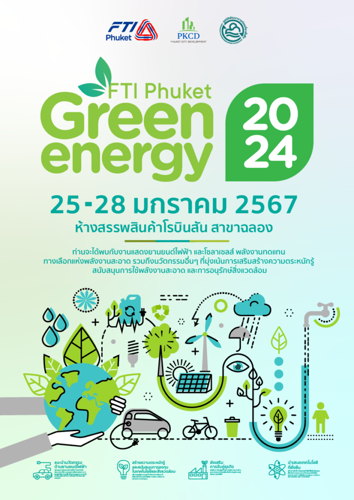The FTI Green Fair 2024 will be held from 25-28 January 2024 at Robinson Phuket Chalong Mall. This event will present electric vehicle innovations. solar panel and other renewable energy innovations Emphasis is placed on the use of clean energy and environmental conservation. Objectives include introducing electric vehicle innovations. Promote awareness of sustainable development Supporting business matching in the tourism and electric vehicle sectors and making sustainable technology easily accessible. along with seminar activities to provide knowledge about clean energy Renewable energy In addition, expand the business to prepare for Phuket Province’s becoming Carbon Neutrality more quickly.